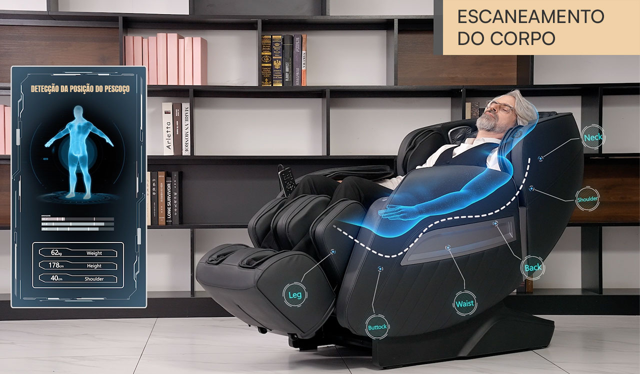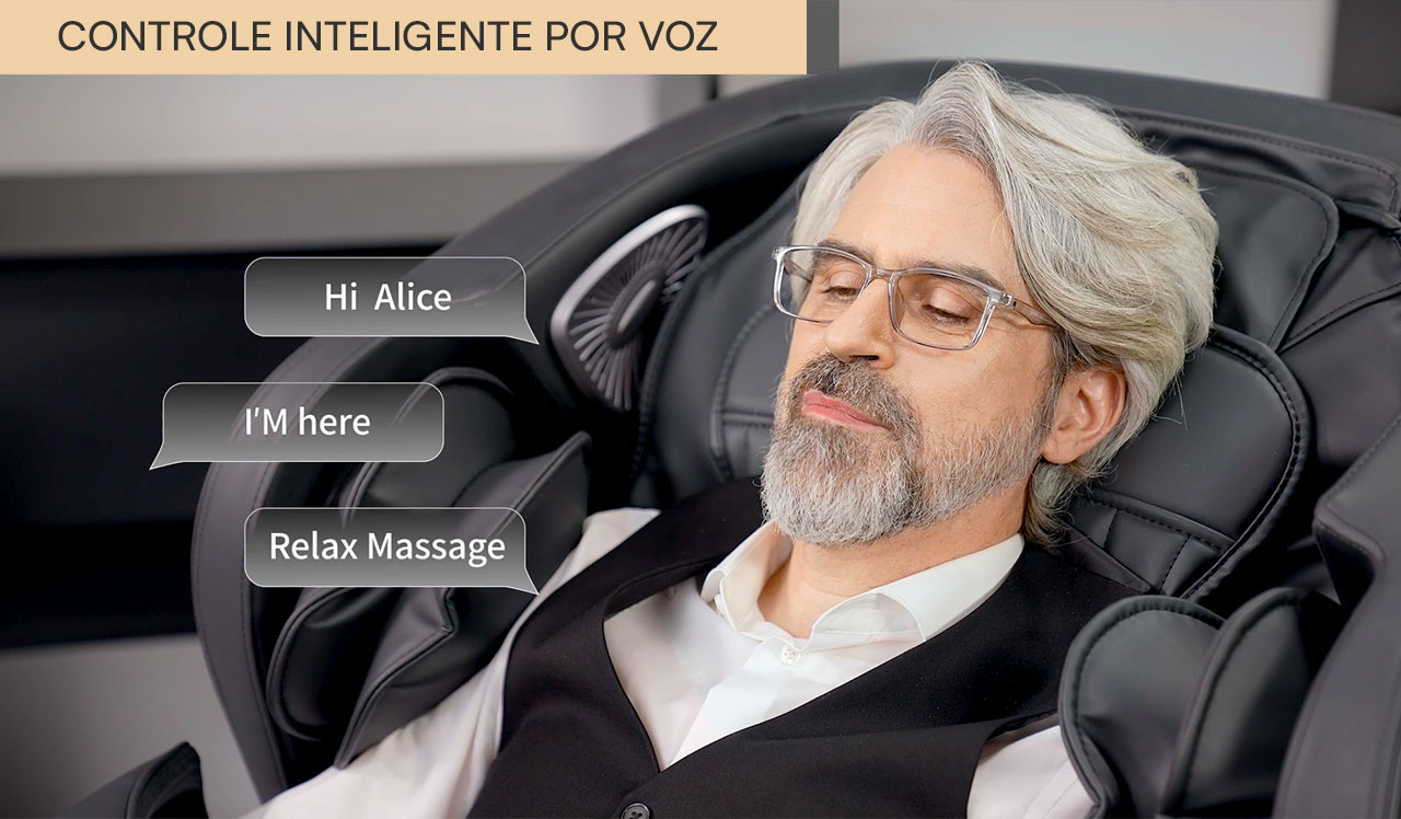 O sistema inteligente de reconhecimento de voz facilita o controle da cadeira de massagem. Não é necessário levantar e ajustar o controle manualmente durante a massagem para desfrutar de mais conforto